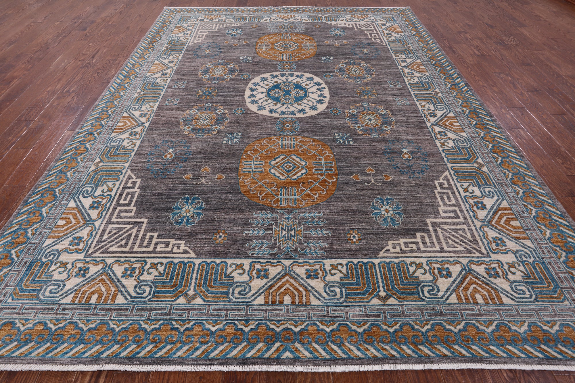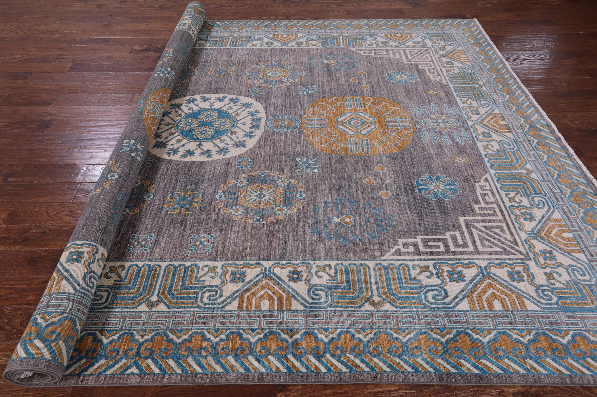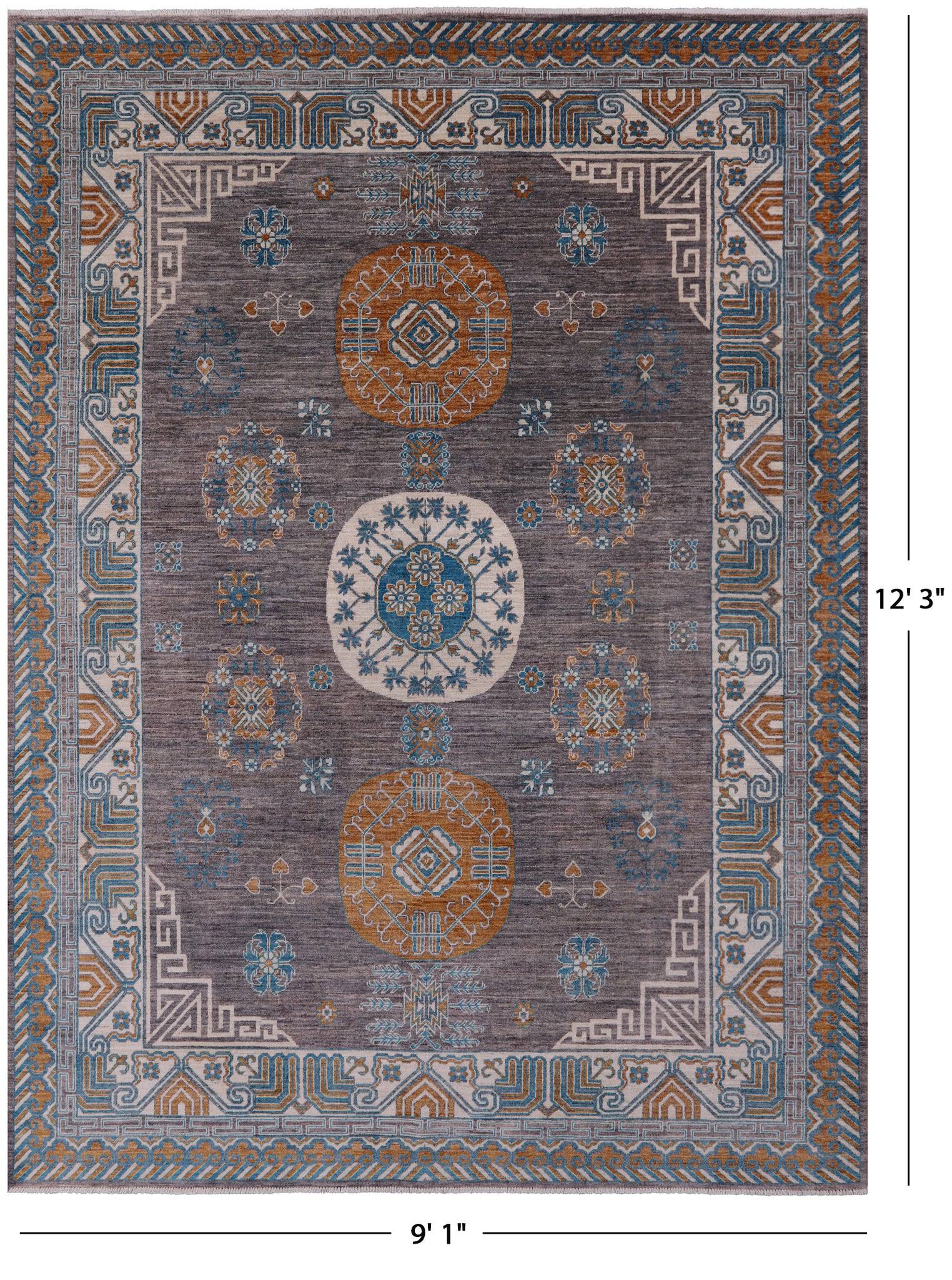 Grey Traditional Khotan Hand Knotted Wool Rug - 9' 1" X 12' 3"