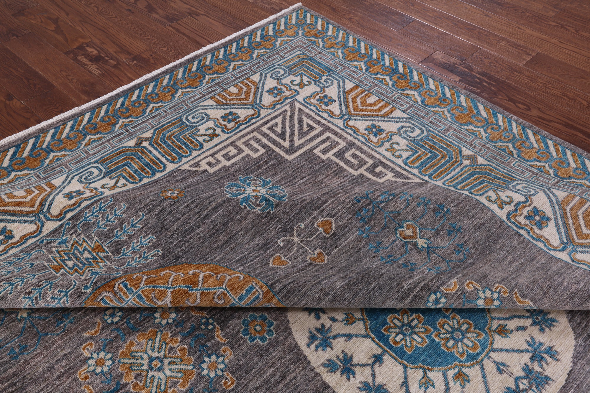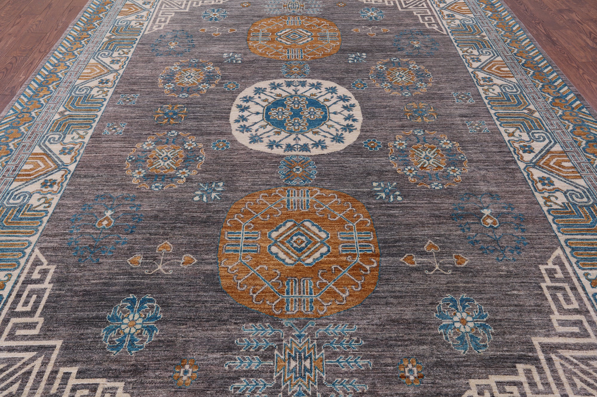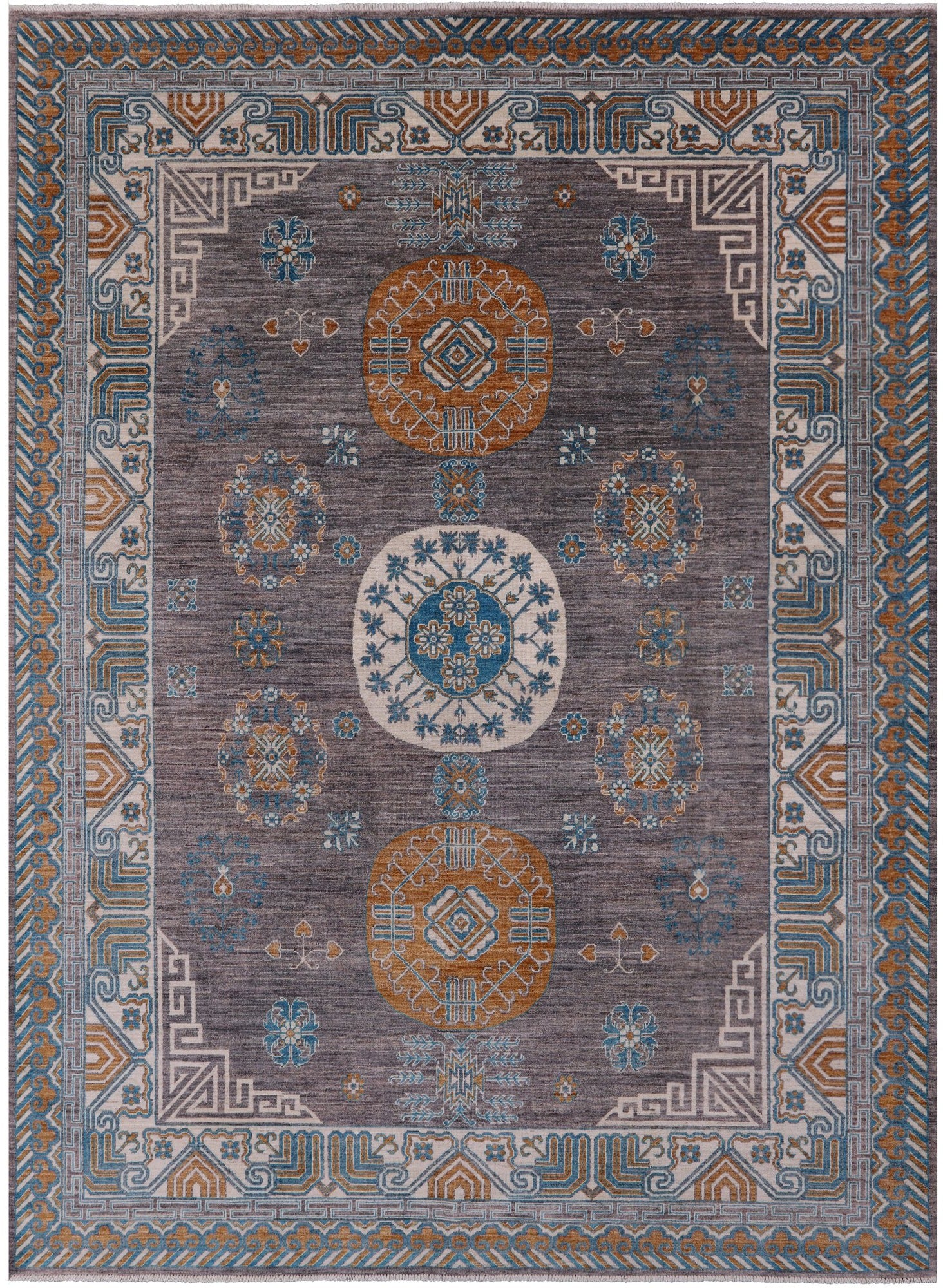 Grey Traditional Khotan Hand Knotted Wool Rug - 9' 1" X 12' 3"