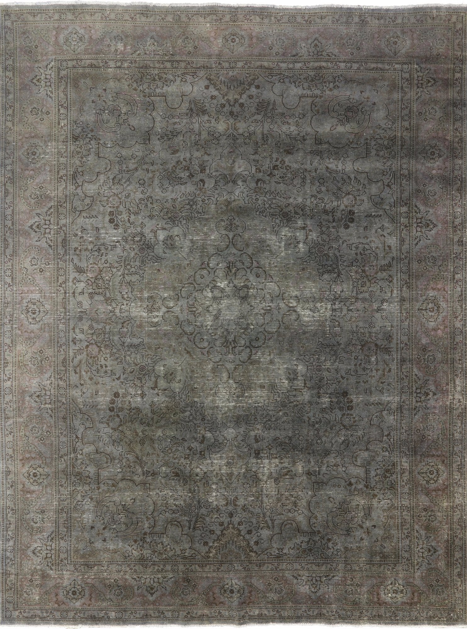 Over-dyed rugs undergo a series of processes to neutralize & lift the original color of the rug. This includes a mixture of chemical washes & natural sun bleaching. During this process, the pattern is not removed, but instead the outline of the design is left, creating a foundation ready to be re-imagined. The carpets are then dyed in one color, sometimes repeatedly in order to reach the desired saturation level.