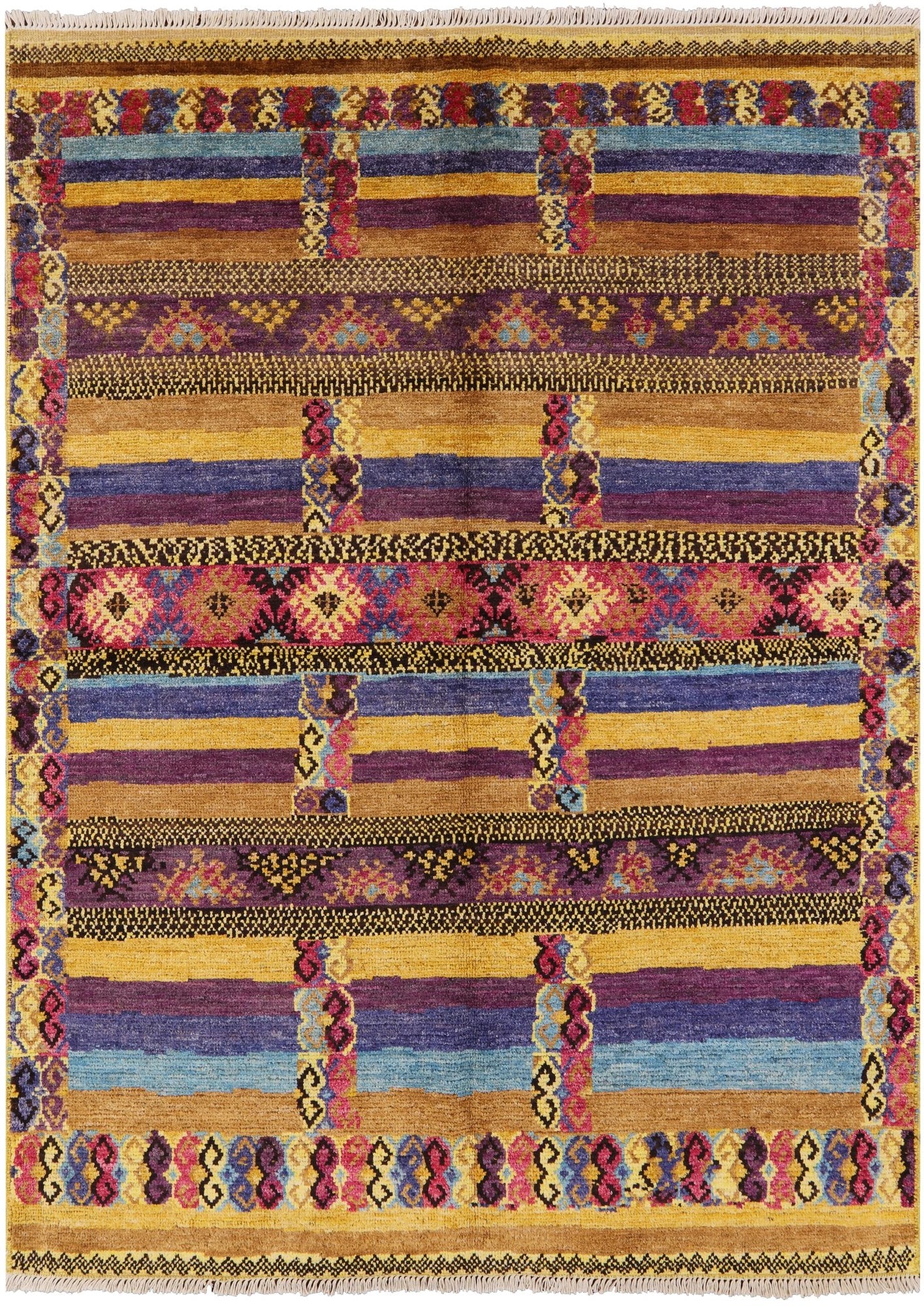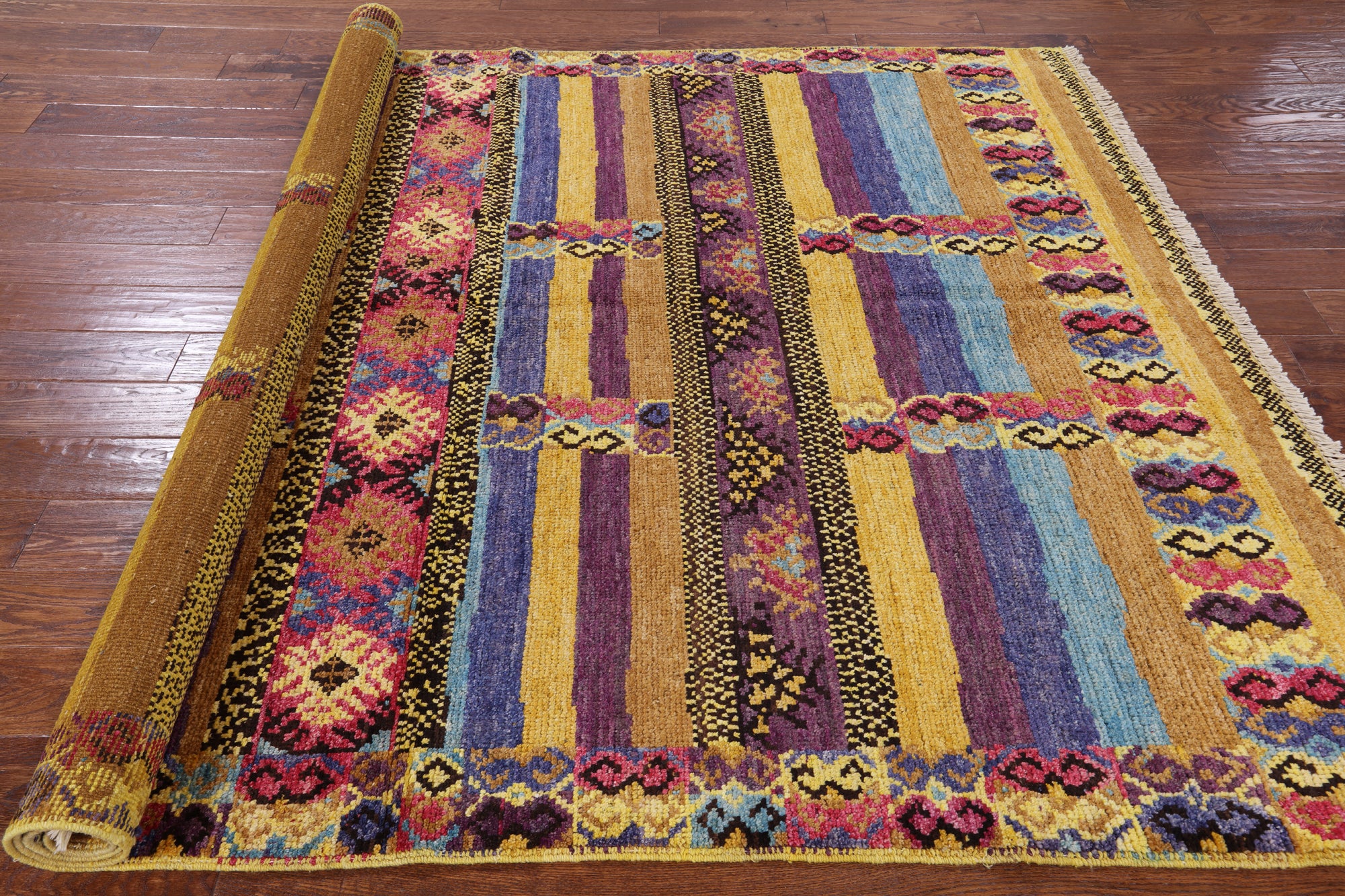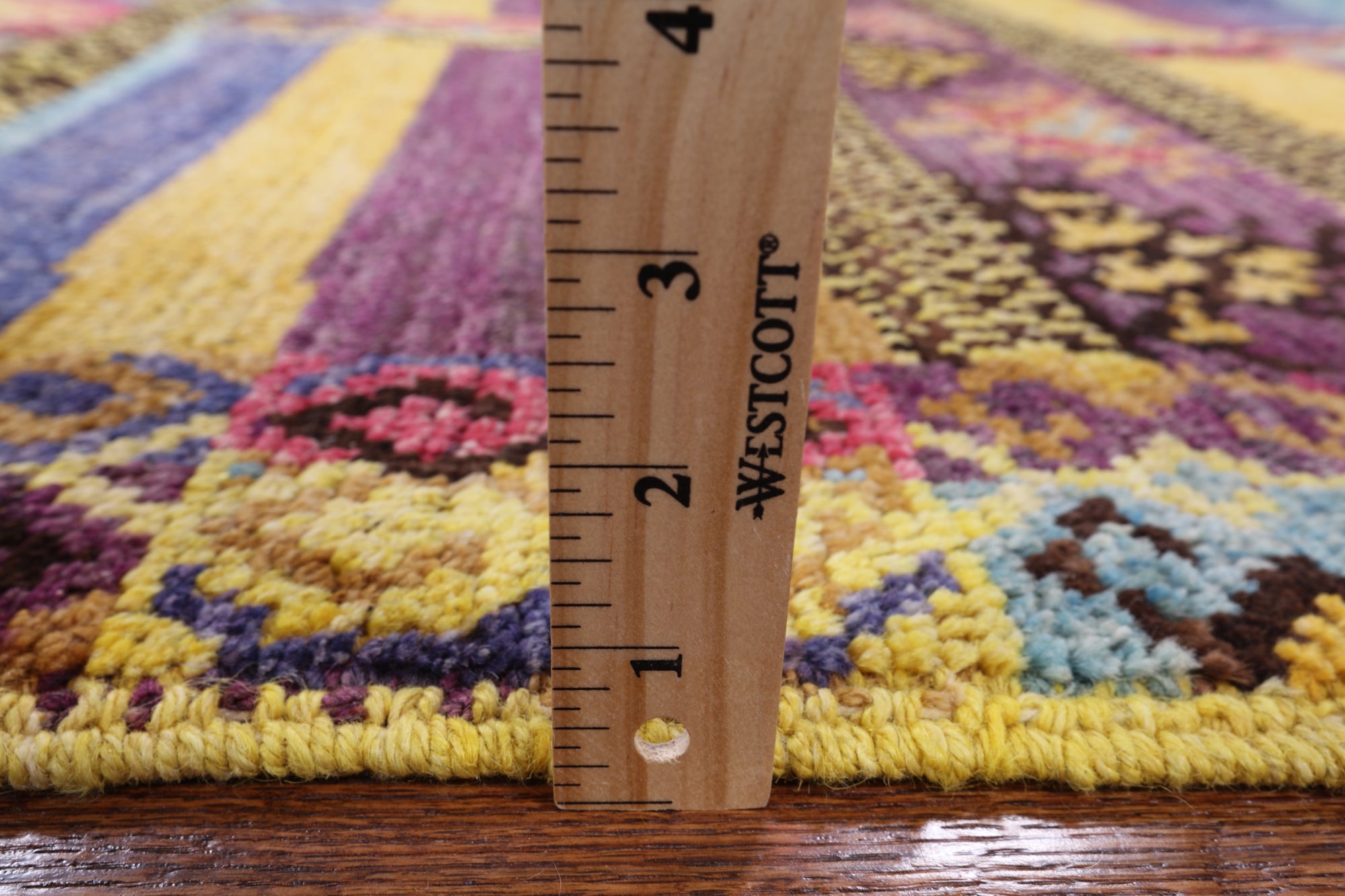 Moroccan Rugs are hand-knotted Oriental rugs that consist of a thick wool pile. Some Moroccan pieces are 100% Wool while others contain a Wool & Silk blend. Each Moroccan has a bit of history depicting strong aspect of culture, and its designs are inspired by nature and the imagination. These pieces of art are usually dyed in bold colors, and the designs are almost always geometric or tribal.