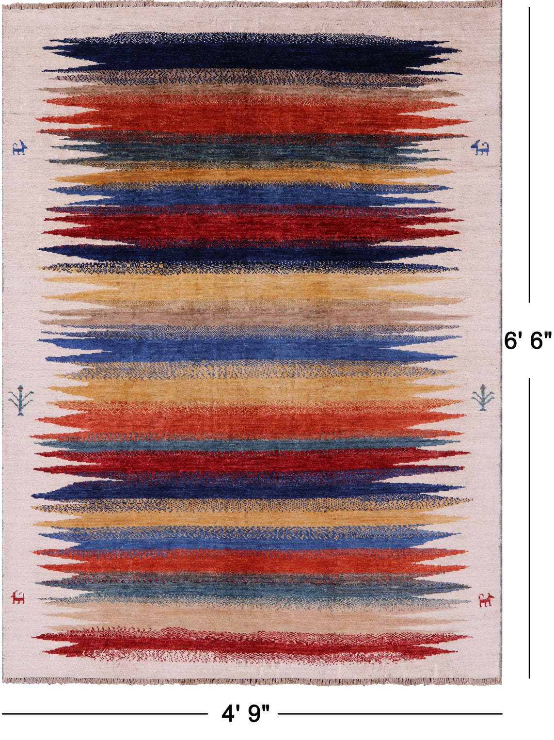 Tribal Persian Gabbeh Hand Knotted Wool Rug - 4' 9" X 6' 6"