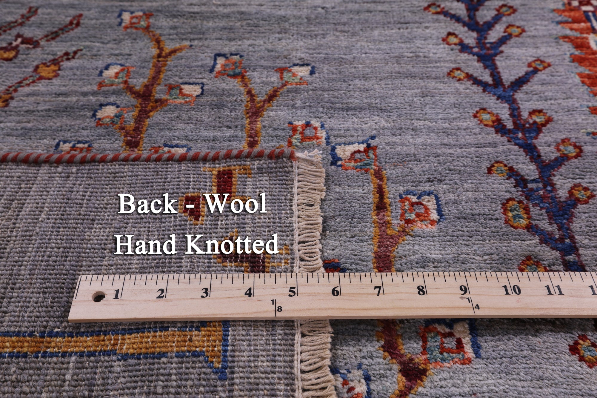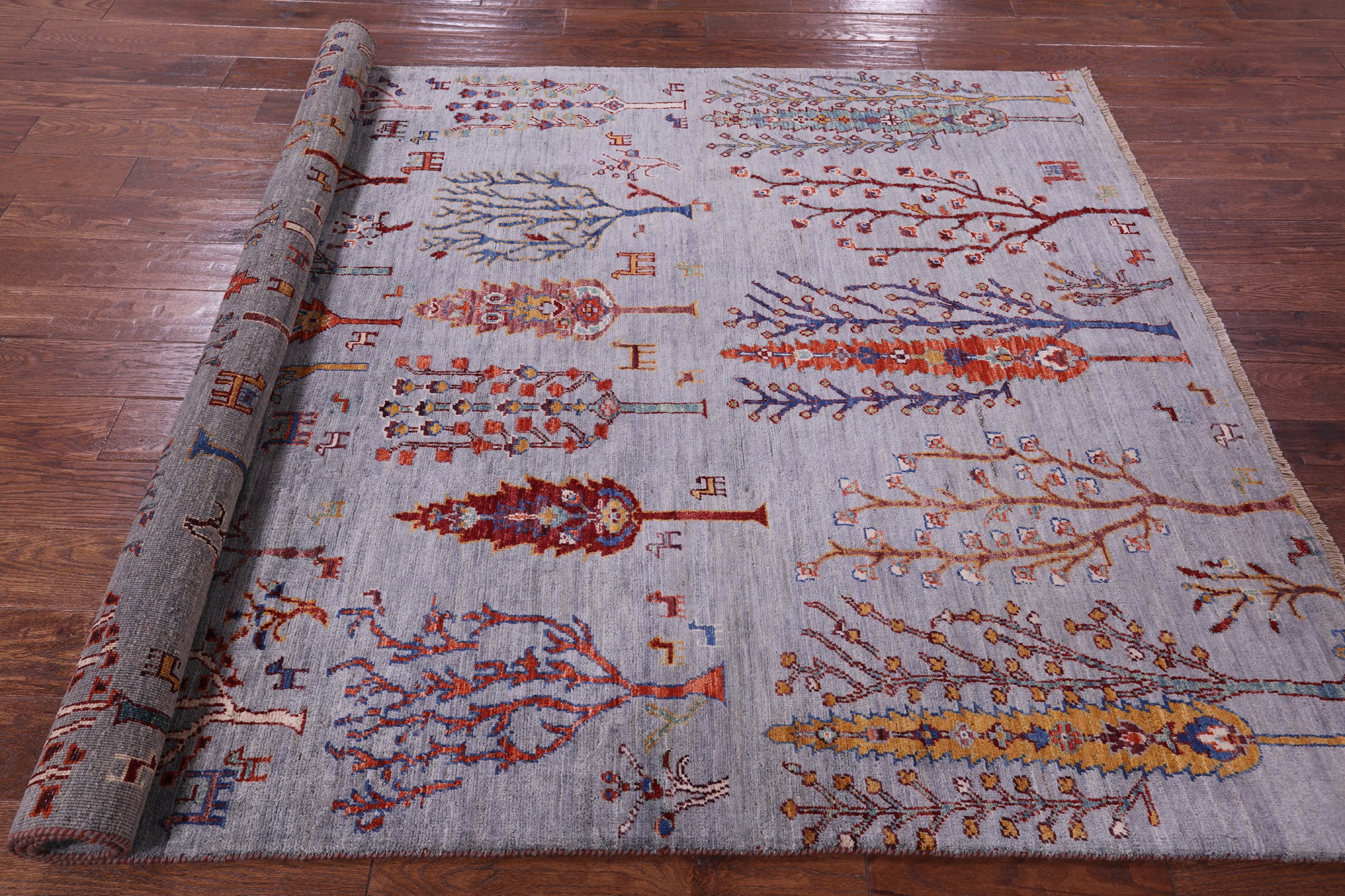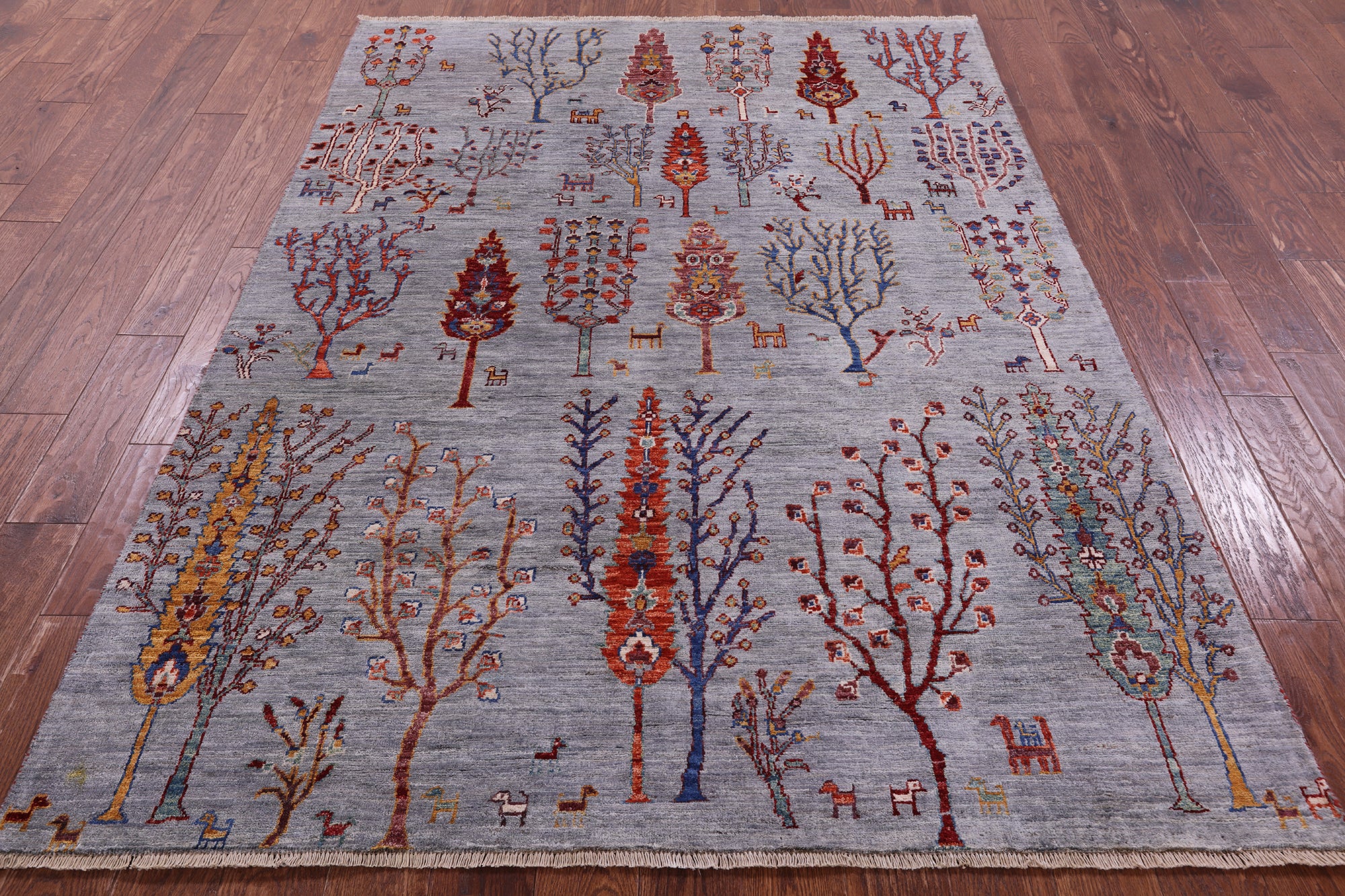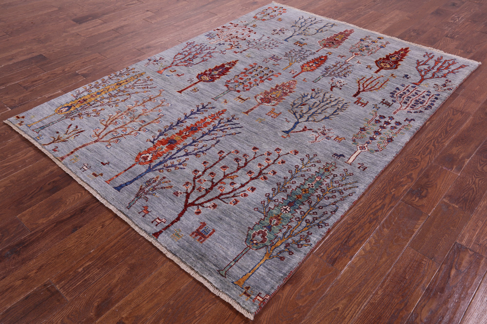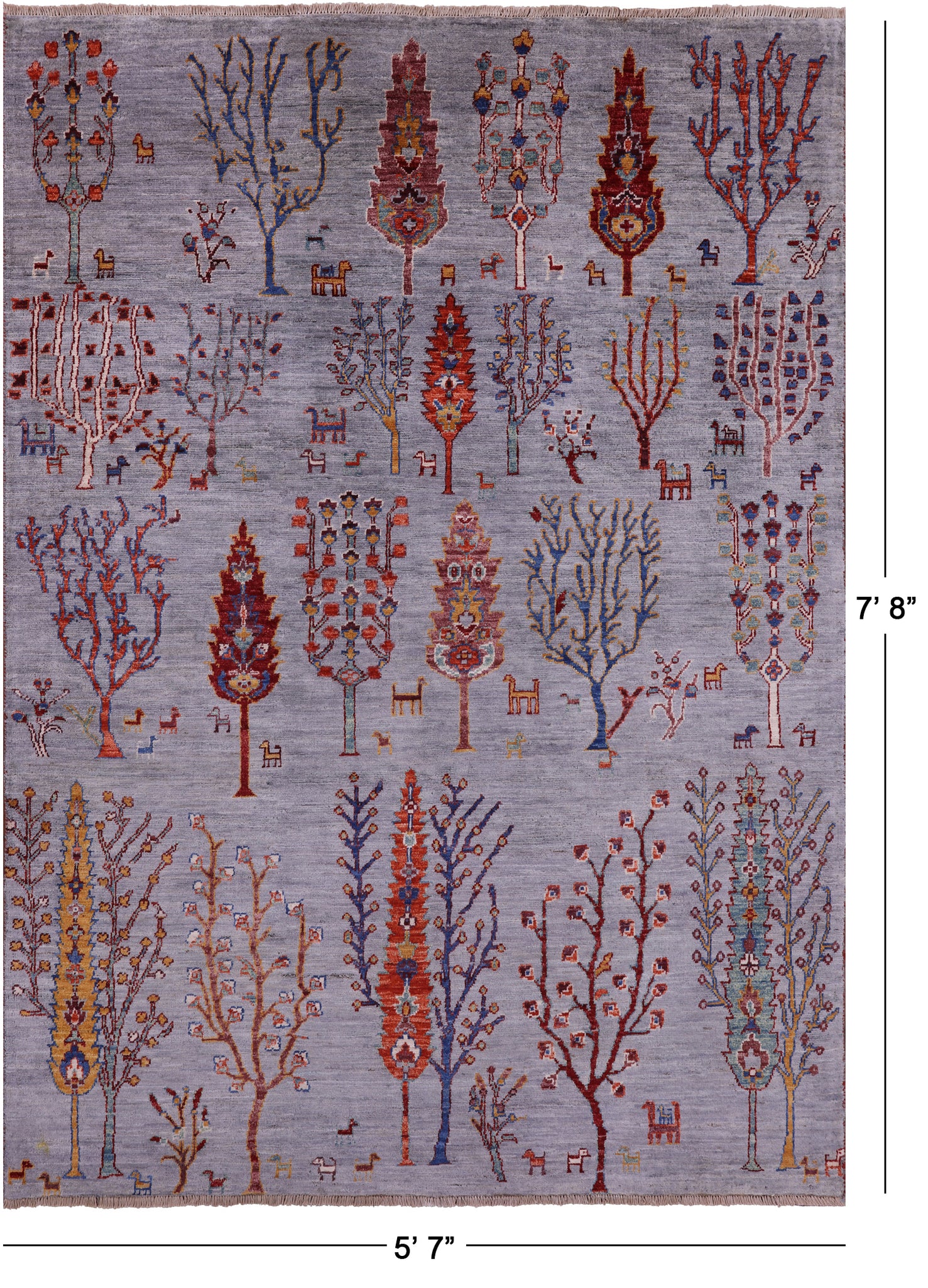 Grey Tribal Persian Gabbeh Hand Knotted Wool Rug - 5' 7" X 7' 8"