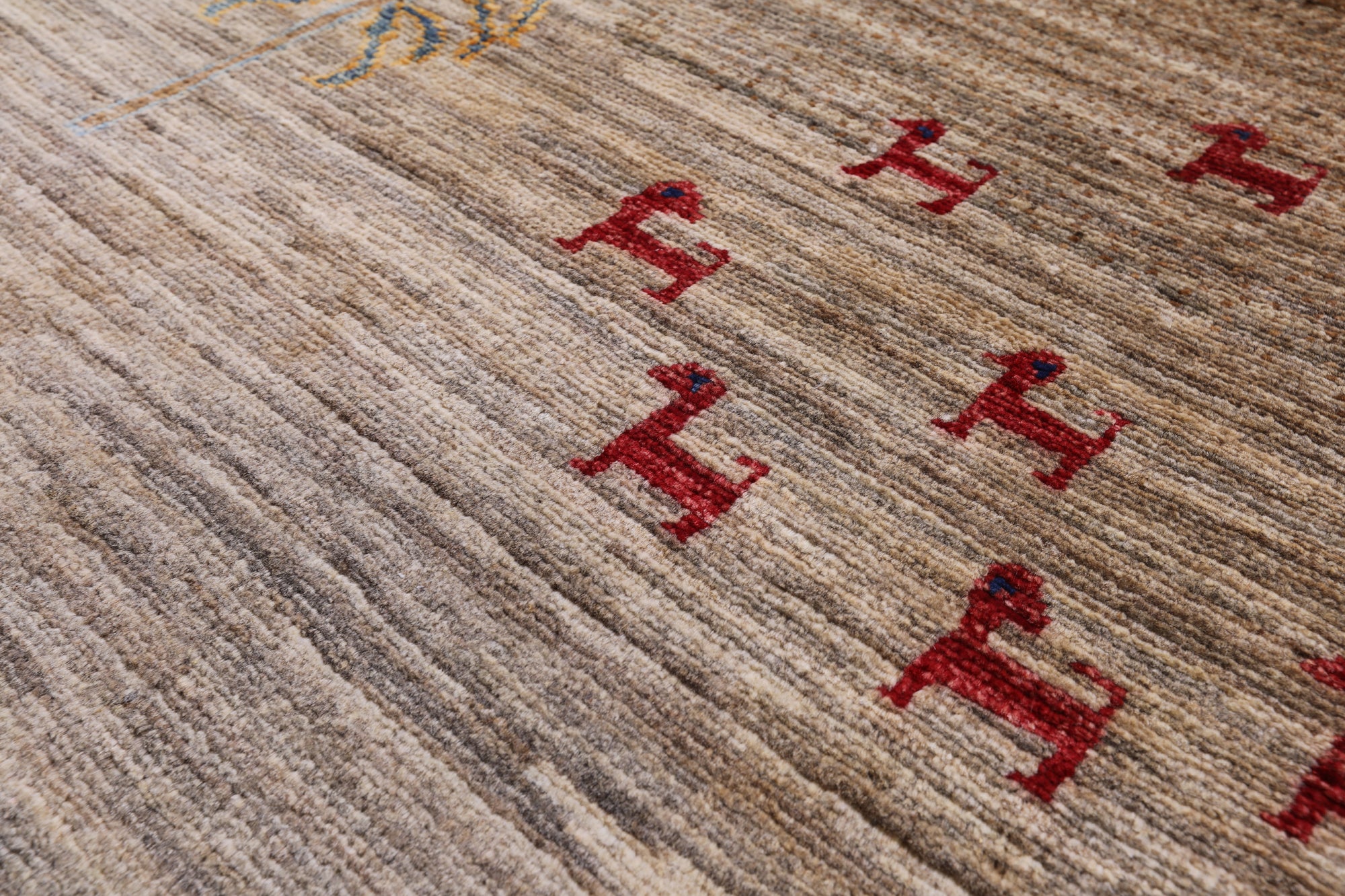 Gabbeh Rugs feature hand-spun wool in both the pile and foundation. These rugs are characterized by their abstract designs that relies upon open fields of color and a playfulness with geometric figures used to depict a story, person, or event. Gabbeh Rugs are popular in a contemporary or modern setting and are extremely durable, usually small to medium size.