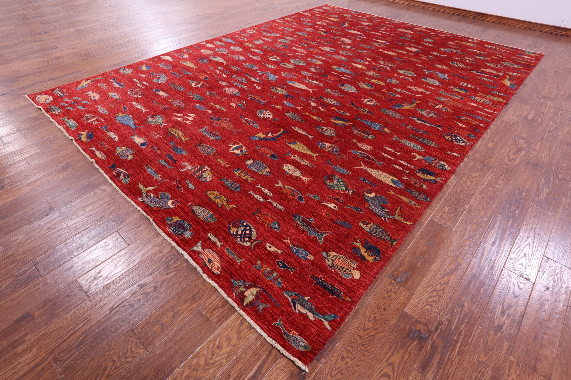 Fish Design Persian Gabbeh Hand Knotted Wool Rug - 9' 10" X 13' 8"