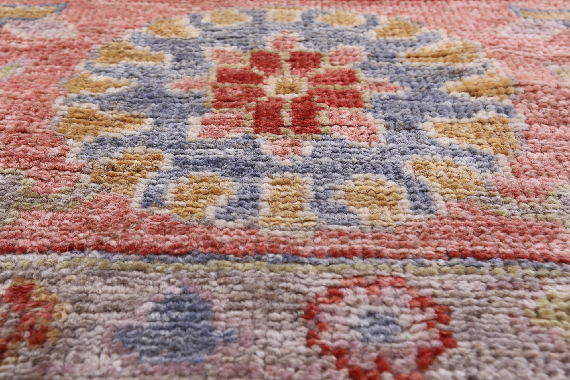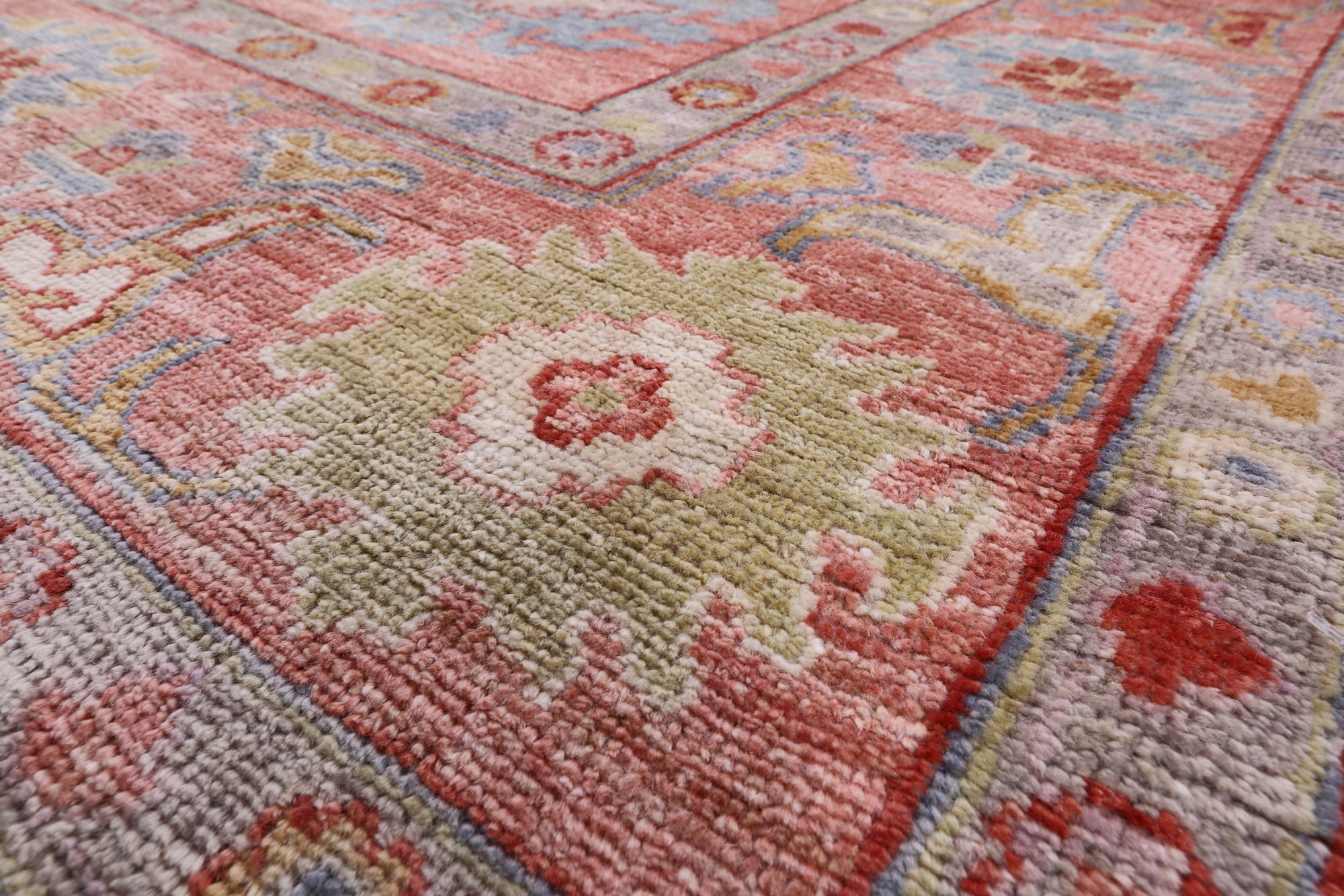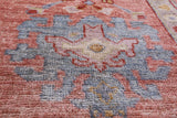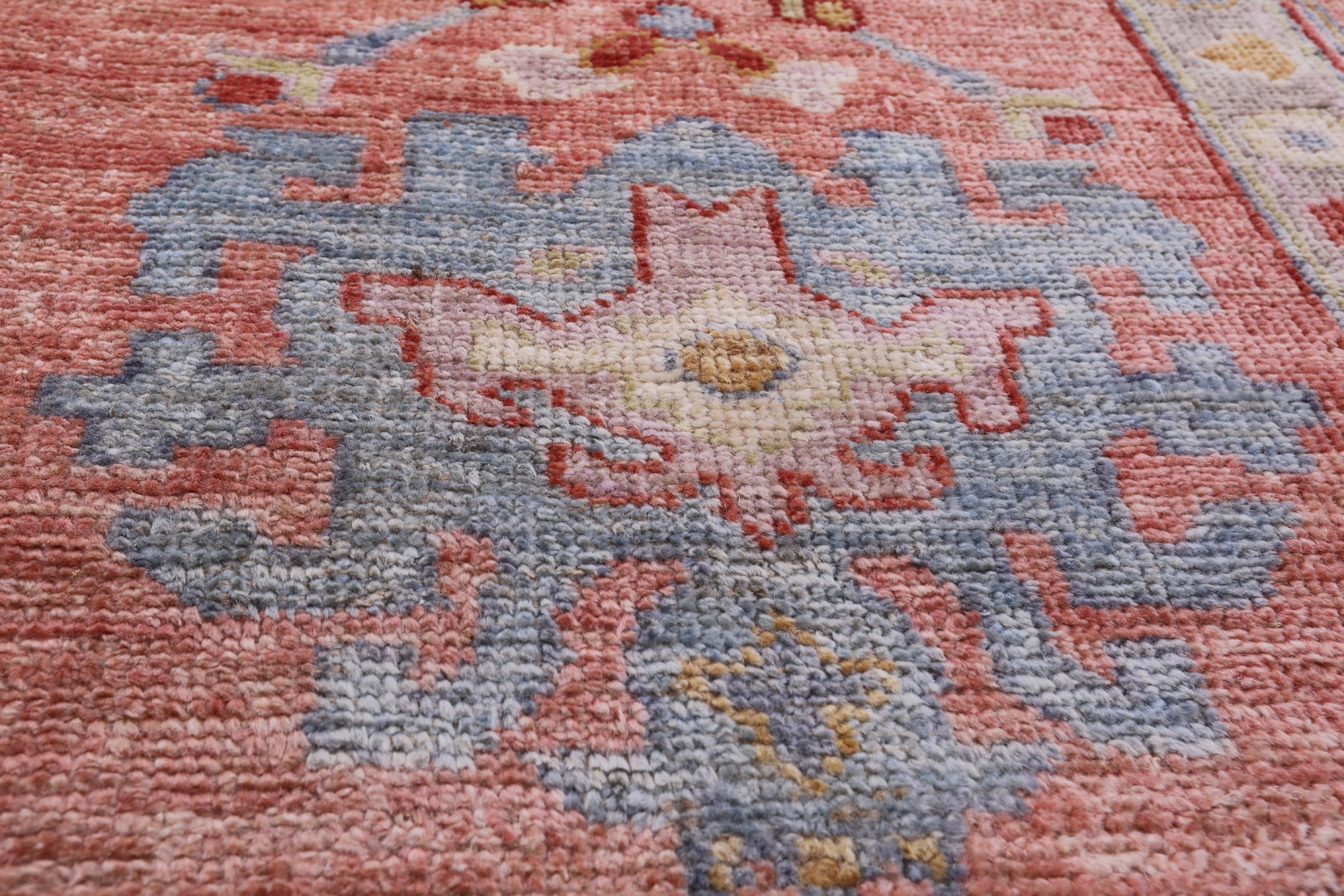 Oushak Rugs are distinctive in both pattern and color palette. Most have a blue, green, dark ivory, or gold & their designs are typically based on geometric motifs and vine / leave motifs. All colors are created with natural vegetable dyes, and the hushed tones are enhanced by the soft, lustrous wool texture. The foundation of an Oushak is cotton while the pile is wool. Oushak rugs are also double-knotted for durability.