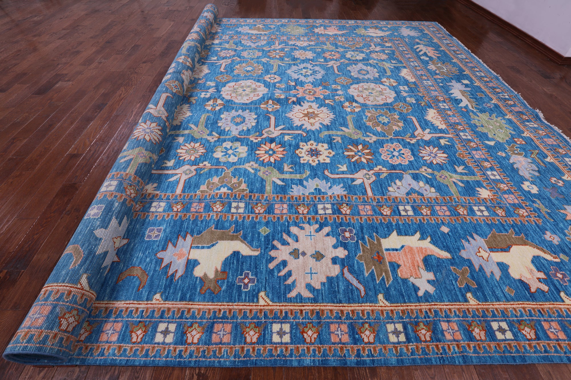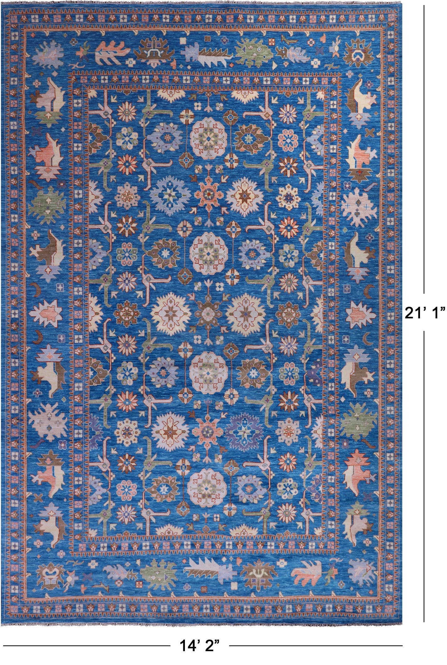 Blue Turkish Oushak Hand Knotted Wool Rug - 14' 2" X 21' 1"