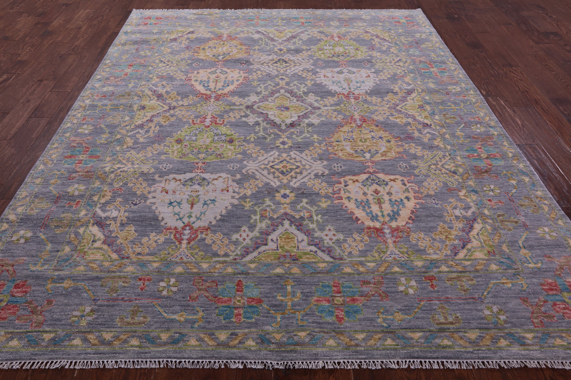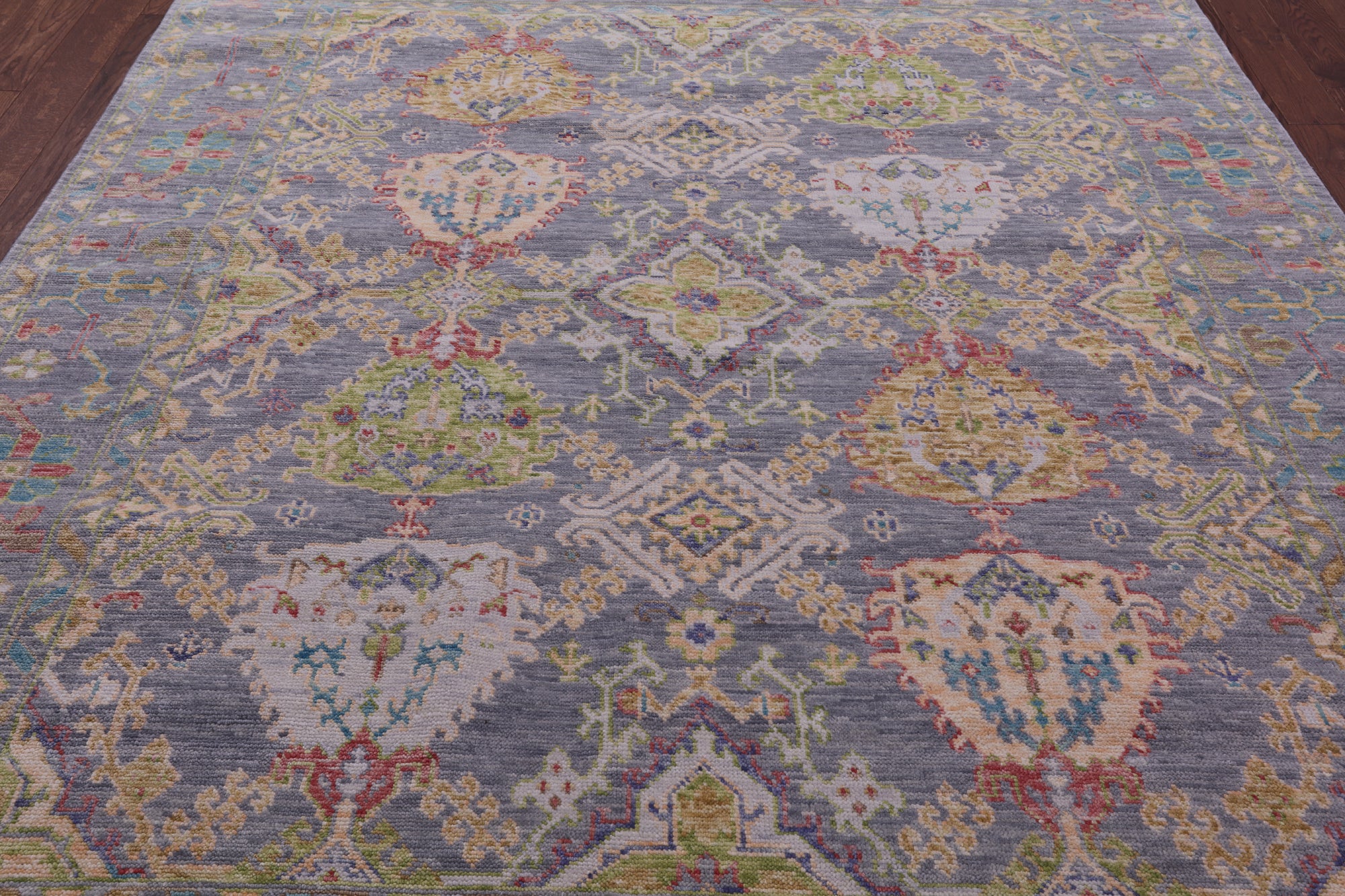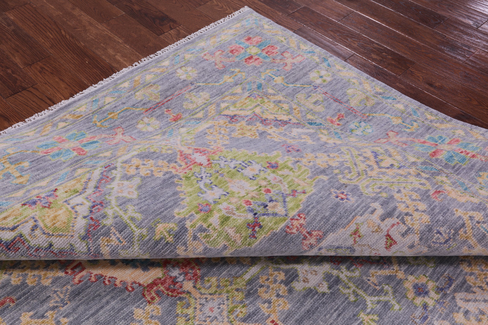 Oushak Rugs are distinctive in both pattern and color palette. Most have a blue, green, dark ivory, or gold & their designs are typically based on geometric motifs and vine / leave motifs. All colors are created with natural vegetable dyes, and the hushed tones are enhanced by the soft, lustrous wool texture. The foundation of an Oushak is cotton while the pile is wool. Oushak rugs are also double-knotted for durability.