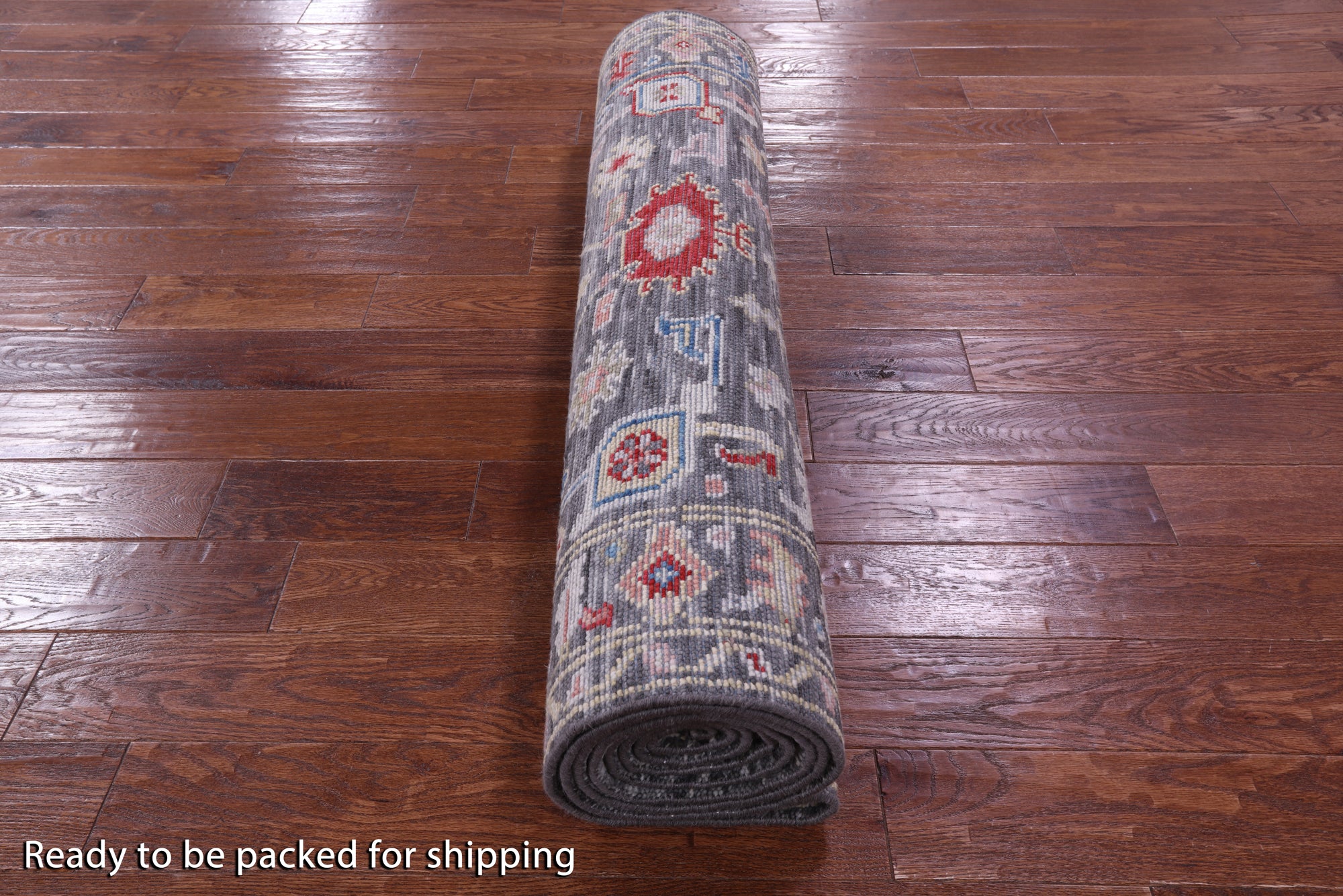 Grey Turkish Oushak Hand Knotted Wool Runner Rug - 4' 3" X 11' 11"