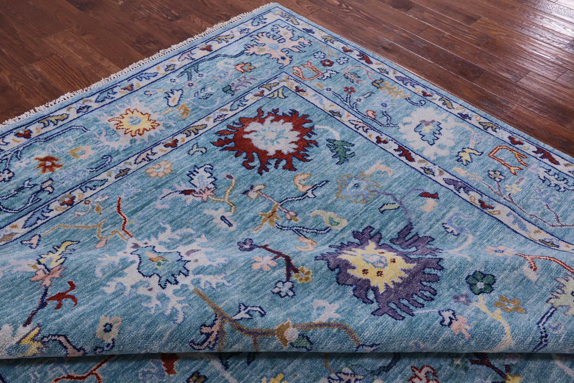 Oushak Rugs are distinctive in both pattern and color palette. Most have a blue, green, dark ivory, or gold & their designs are typically based on geometric motifs and vine / leave motifs. All colors are created with natural vegetable dyes, and the hushed tones are enhanced by the soft, lustrous wool texture. The foundation of an Oushak is cotton while the pile is wool. Oushak rugs are also double-knotted for durability.