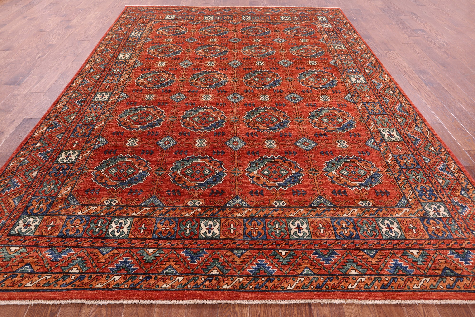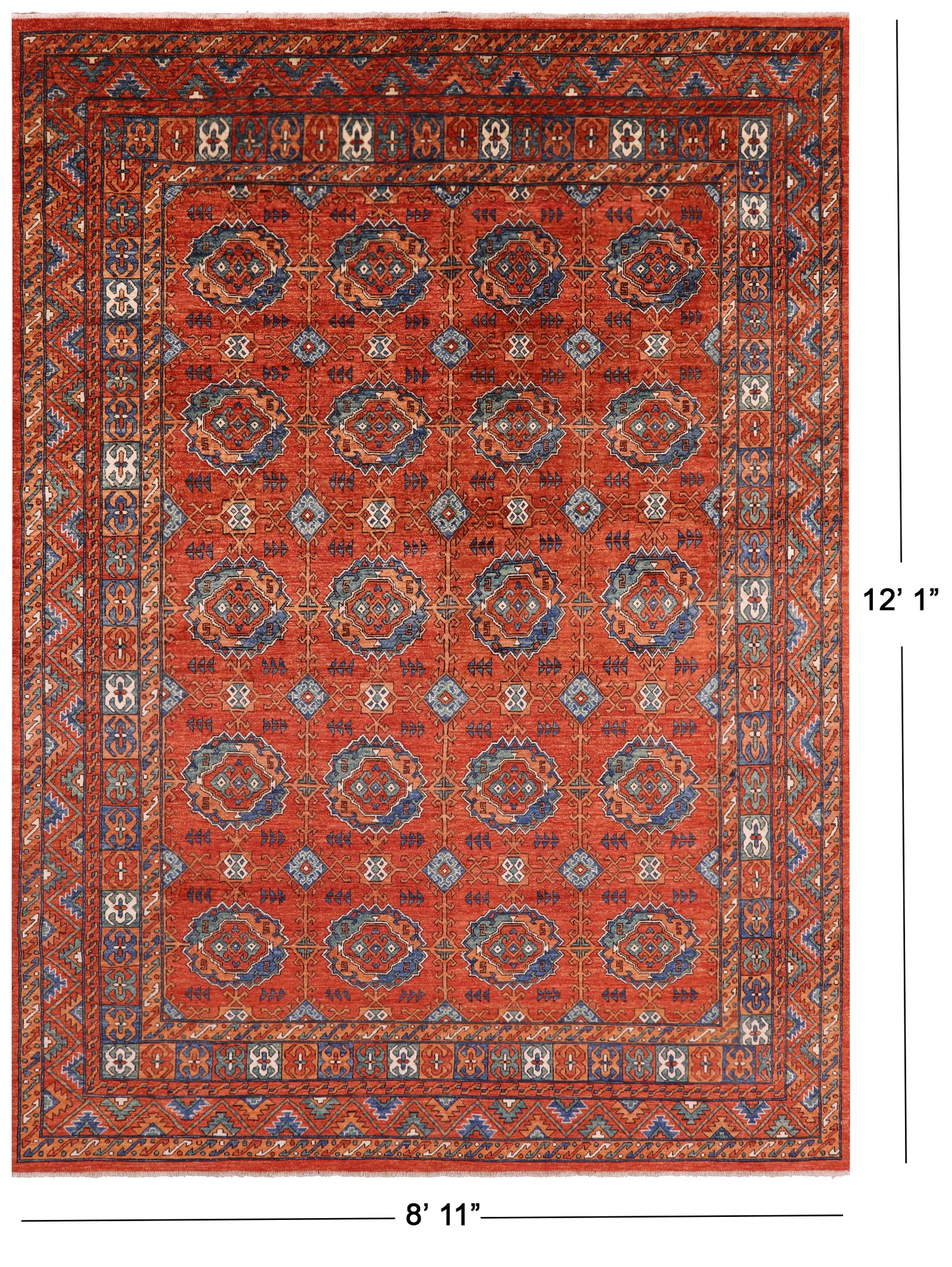 Red Turkmen Ersari Hand Knotted Wool Rug - 8' 11" X 12' 1"