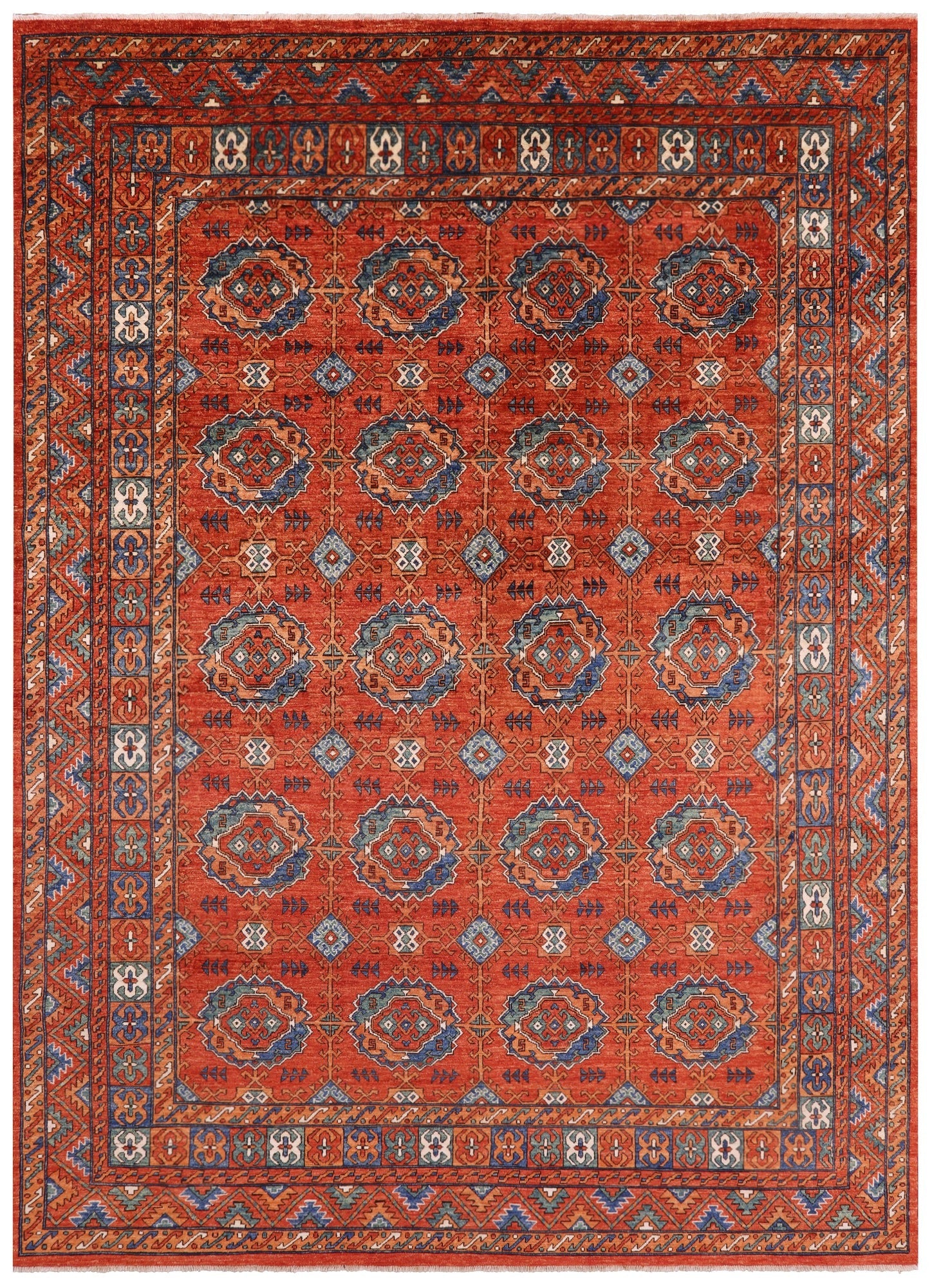 These tribal inspired rugs originated in central Asia, and are distinctive for their dominating color scheme with dark reds, blues, black and at times ivory. These rugs do tend to be small or midsized and have soft wool, but have a hard pile that is cut thin, which makes them quite durable. Turkman rugs are the finest of the tribal rugs that have been produced to date.