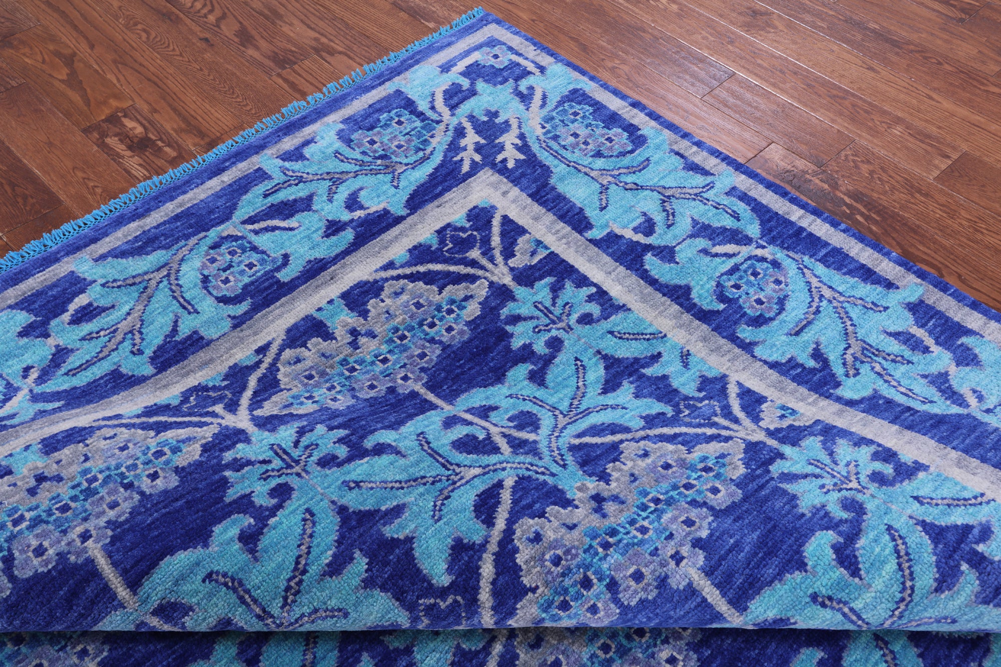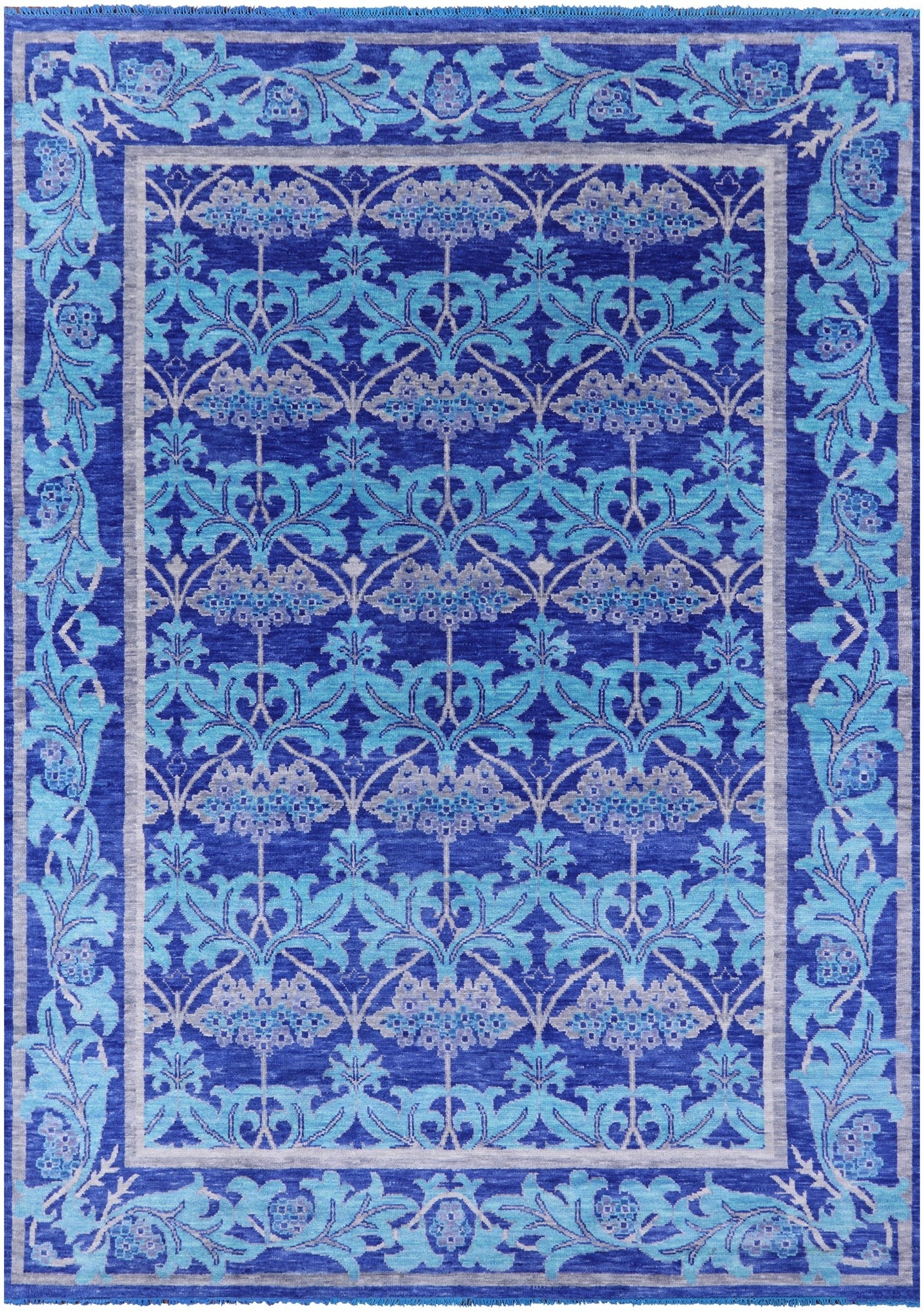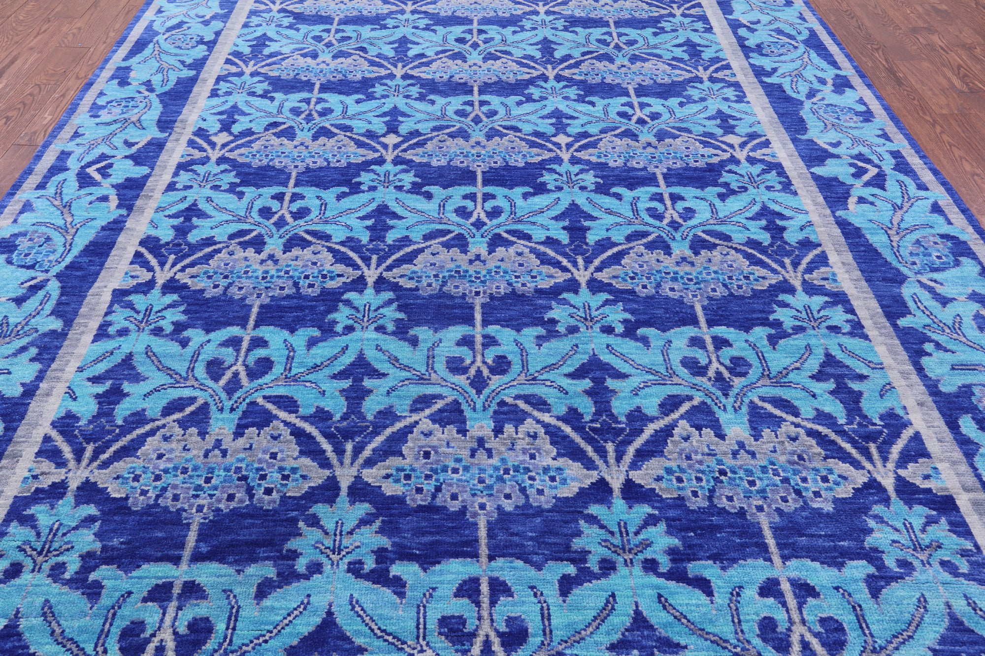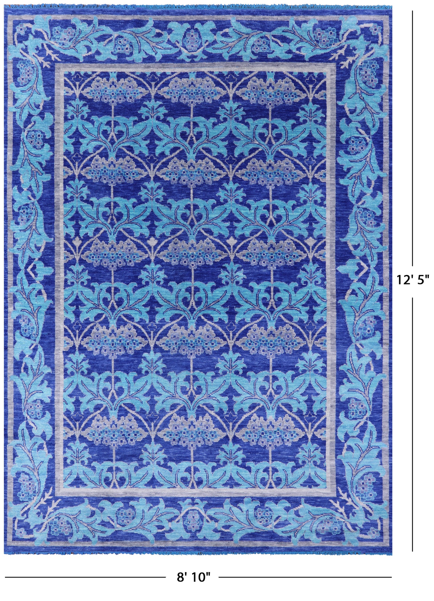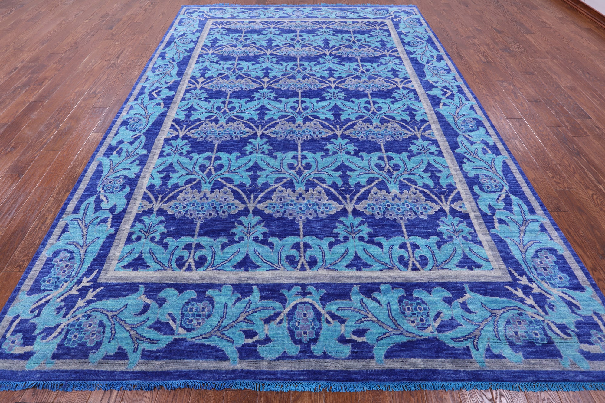 Blue William Morris Hand Knotted Wool Rug - 8' 10" X 12' 5"